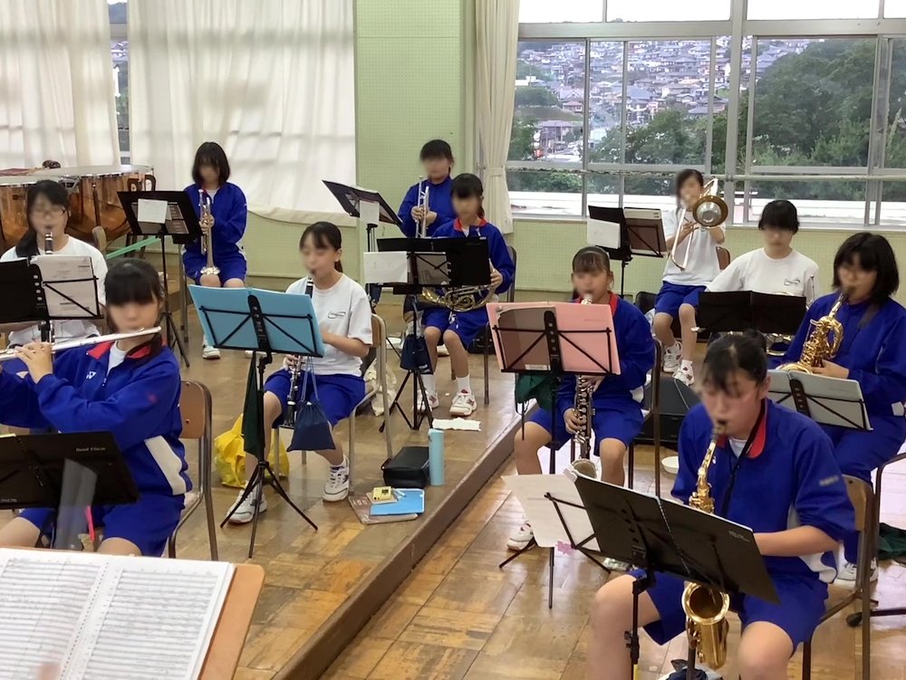 7.16 吹奏楽コンクール壮行式を行いました 7月16日(金)昼の時間に,吹奏楽コンクール壮行式を行いました。吹奏楽部部長の決意表明のあと,応援委員会からの激励の言葉,校長先生のお話がありました。演奏披露は,動画を各教室で上映する形で行いました。生で聴くことはできませんでしたが,すてきな演奏をありがとうございました。コンクールでも玉中サウンドを響かせてください。